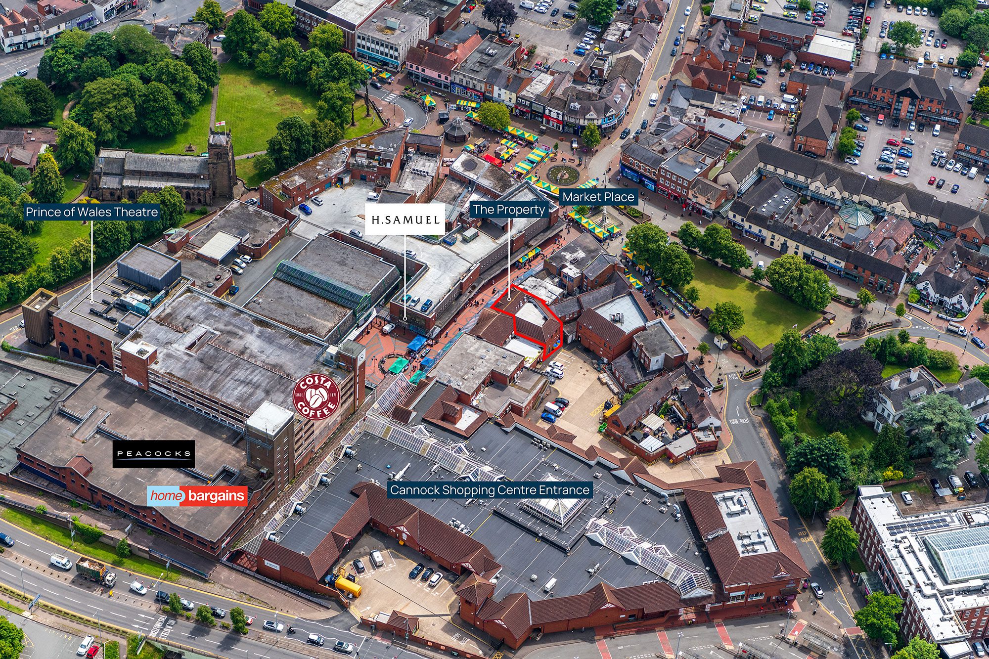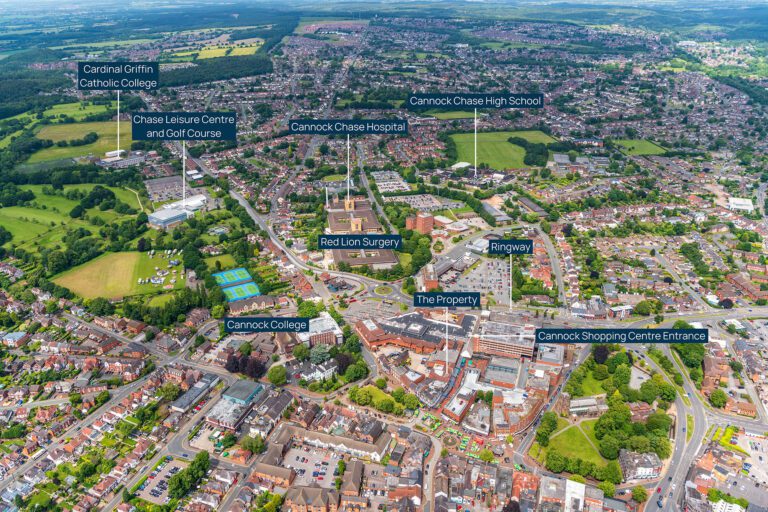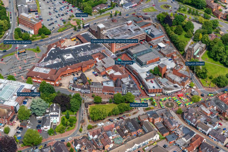 - The property occupies a prime retailing pitch in the heart of the town centre, forming part of the Cannock Shopping Centre;